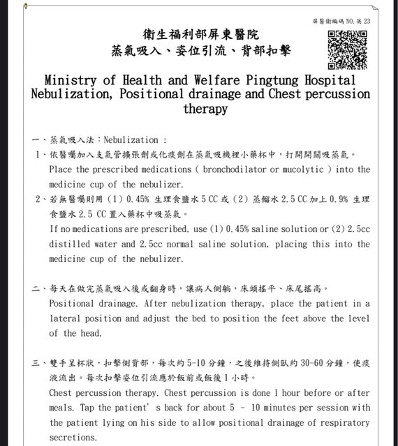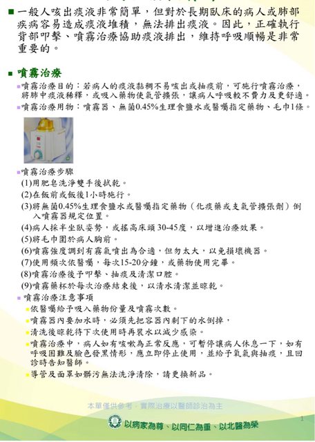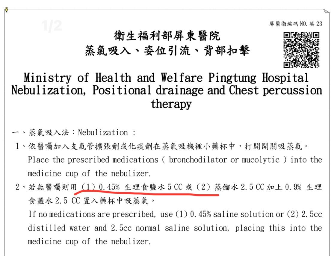0.45%食鹽水做霧化治療的部分,幾乎都只有在台灣的衛教單張能看的到,