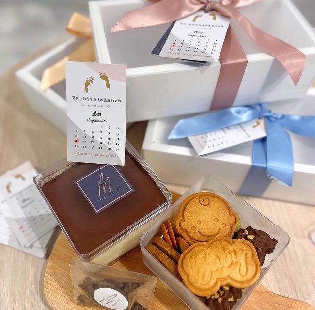 彌月禮盒可以選擇提拉米蘇(很多口味)、司康、手工餅乾做搭配,我們是選擇一盒提拉