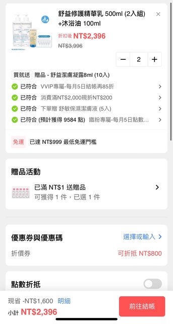 → c1inique : 的折扣+點數優惠下來真的蠻便宜的!異膚寶+媽媽自己 02/06 14:12