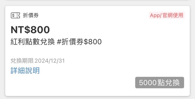 5000點可以兌換800元折價券