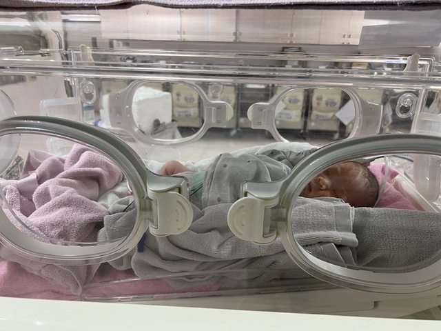 速上車,到急診門口我還在流血,當天兩個半小時緊急剖腹生產,孩子出生在保溫箱住了
