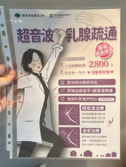 她是做健保給付)。另外,月子中心裡面也有疏通乳房的物理治療課程,是專業物理治療