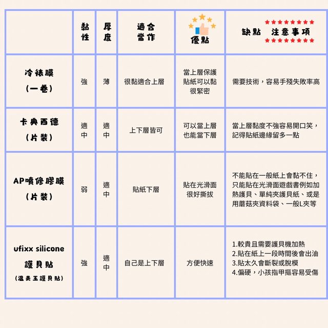 1.貼紙上層選黏性強且厚度薄的,例如:冷膜、卡典西德、透明膠帶
