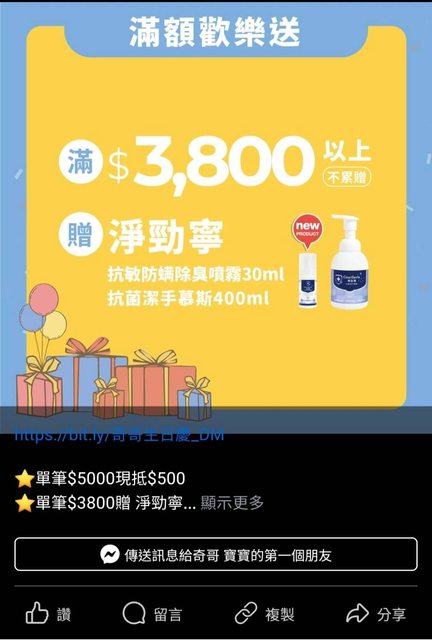 還有滿額3,800以上就送除臭噴霧和潔手慕斯
