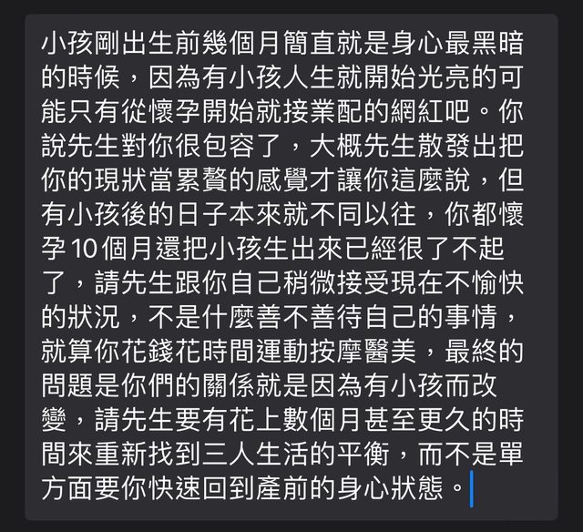 → ijulie : 脫離產後憂鬱症,但還是會憤恨當時老公不能同理我 05/06 13:46