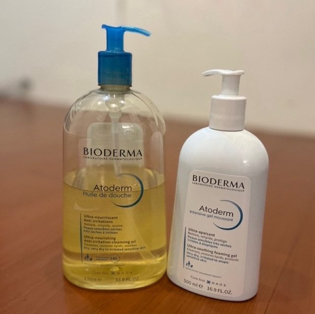 洗澡的選單純溫和就可以,潔膚凝露剛好家裡就有,沐浴油也好用,基本上全家都能