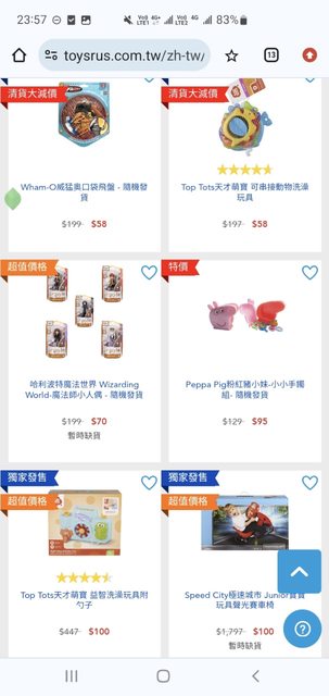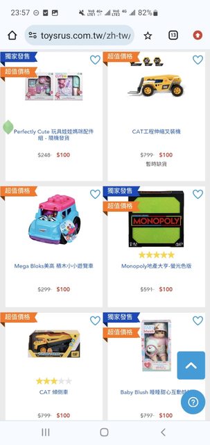 還好最後狂刷網頁才搶到三件各100的玩具