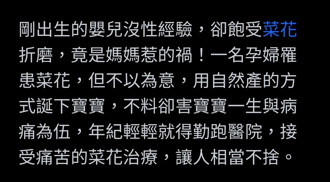 → jimmy911112 : 沒取到。包含生產的當下也可能傳給寶寶,我是不敢冒 06/26 09:12