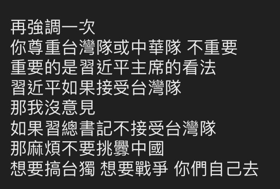 → kapture2204: 洛桑協議是一回事 球員堅持喊台灣是他的自由 嗆司曲 12/01 14:13