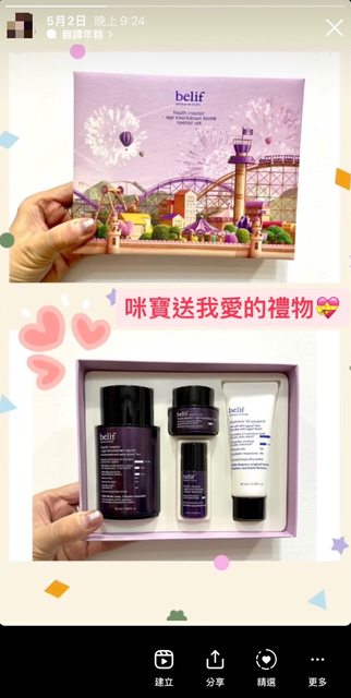 結果今年收到閨蜜送我這組belif紫苑青春母親節禮盒,當時還有拍照到IG炫耀一下~