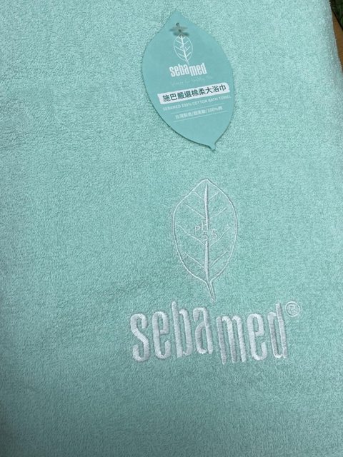 當天專櫃好像有三個組合買就送施巴logo的大浴巾,剛好我的抗乾敏這組也有