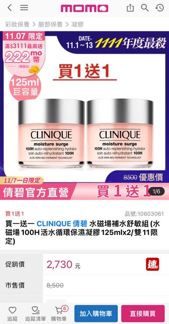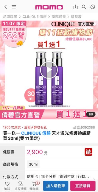 標題[情報] 倩碧momo 1111活動 買一送一