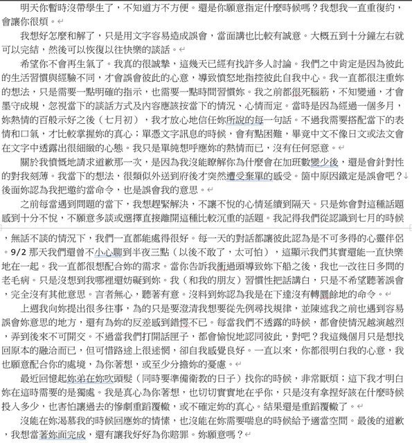 段嗎?原本約星期三和解,後來我每天問,相信你也都厭煩了吧?我的部分只剩五到十分