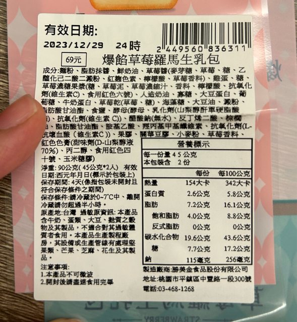 【商品名稱/價格】:爆餡草莓羅馬生乳包/69元