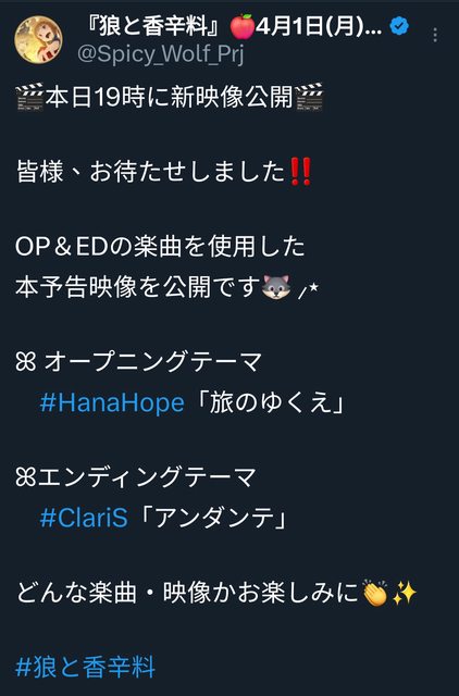 標題[情報] 狼與辛香料 今晚新映像公開