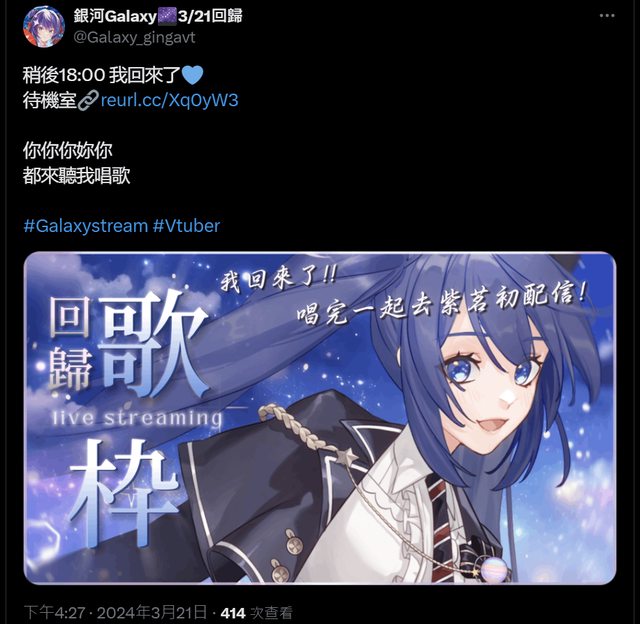 直播快開始了,很久沒聽到銀河唱歌的人趕快進待機室吧