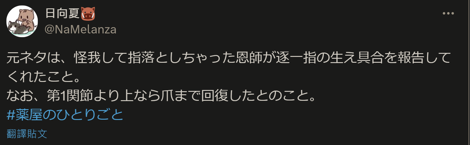 → LABOYS: 切手紙的原捏他是作者的恩師跟他講的切掉指頭後逐漸復原的 03/24 01:32