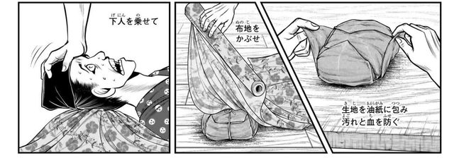 把麵糰包進布裡面,踩麵團順便教訓選錯給尊氏衣服用的布的下人