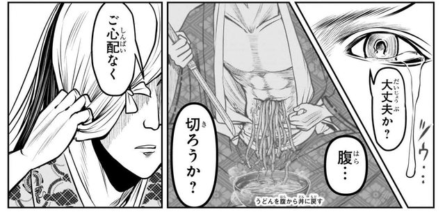 (尊氏幻想切腹後剛吃下去的烏龍麵都流回碗裡