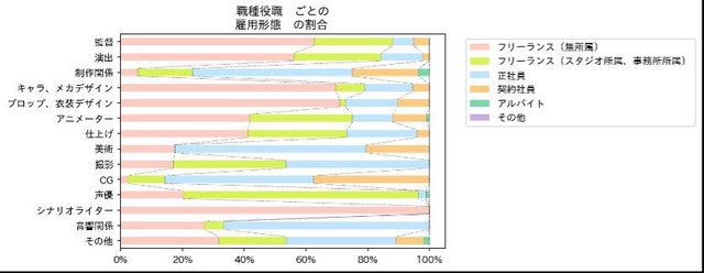 在這次的調查中,有32%的人是正社員工,契約員工或是短期工作的,但如果是在製作,