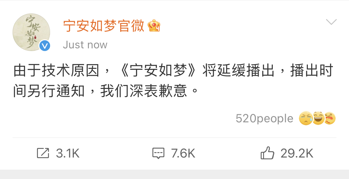 推 AYLiu: 囧 7點了 愛奇藝還沒看到寧安如夢 05/19 19:03