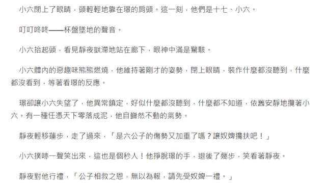小六還故意維持原姿勢,看璟會不會在意靜夜。