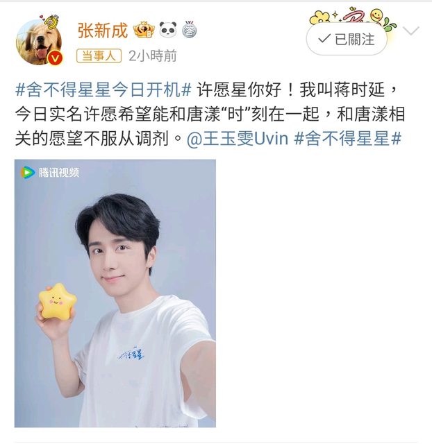 標題[情報] 張新成、王玉雯《捨不得星星》今日開機