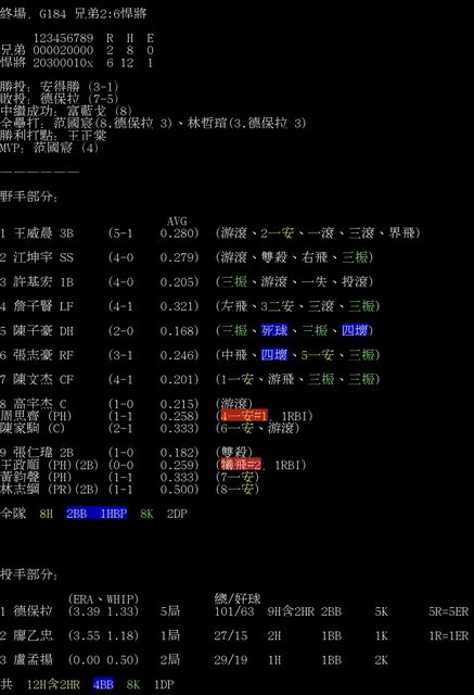 標題[情報] G184 兄弟2:6悍將 全場數據box