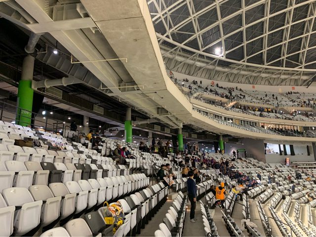 繞完一圈要回座位就悲劇了,幾萬觀眾的比賽只有一個手扶梯是要怎麼不爆…後來開樓梯