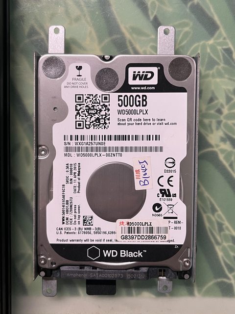 ___近期開機發現硬碟好像壞了,換了顆二手無壞軌的WD黑標500G硬碟