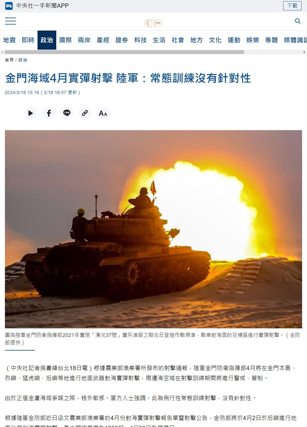 → jma306: 四月份的金門火炮實彈演習 也是臨時取消 114.26.75.145 05/23 09:14