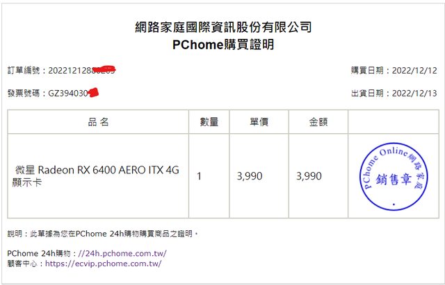 ◎硬體型號: 微星 Radeon RX 6400 AERO ITX 4G 顯示卡