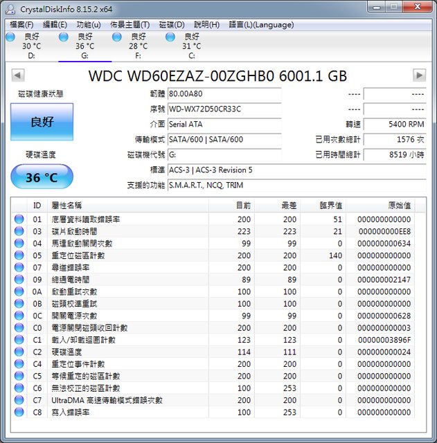 平常是用來備份資料的硬碟,沒有使用NAS,也非系統碟