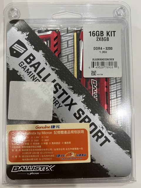 標題[賣/全國/皆可]美光Ballistix DDR4 3200 8G*2(恰中)
