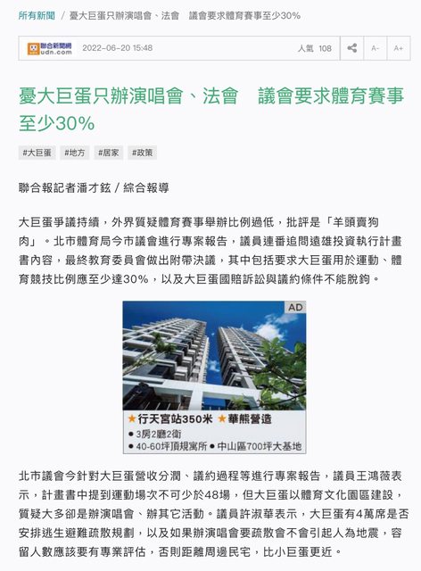 看新聞2022年的新聞那時台北市議會還在質疑大巨蛋只想辦演唱會跟商業活動,球賽會太