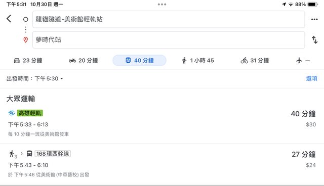 → jric : 其實如果輕軌離出發地目的地近,在算一下騎開車找 10/30 20:21