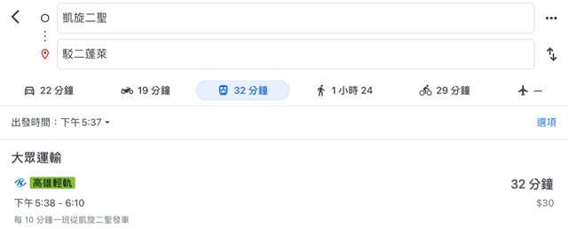 → alkene : 班」時刻「均速」大於輕軌,我騎機車通勤都不會比 10/30 23:28