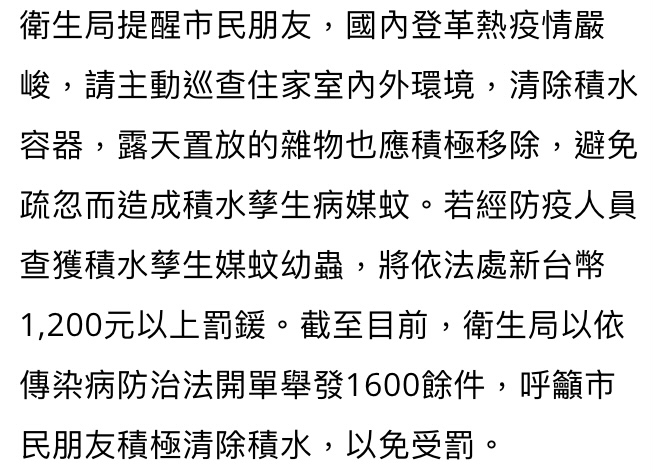 推 zombleflcon : 開單標準是看有沒有積水 一堆人沒看過衛生局的嘴臉 11/03 01:44