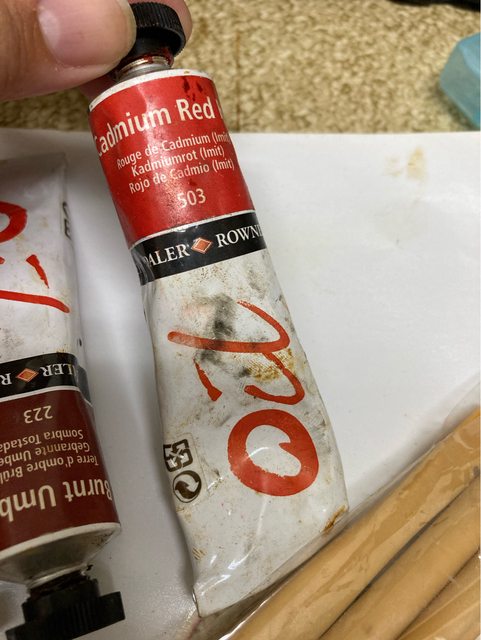油畫顏料久放,不過裡面還可以用!(至於會這麼髒多少以前有使用痕跡&可能旁邊顏料