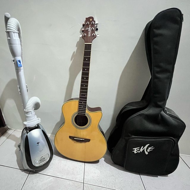 (已換出)2.吉他:含袋子。買來沒彈過幾次,一陣子沒有使用有點灰塵,不介意再自取