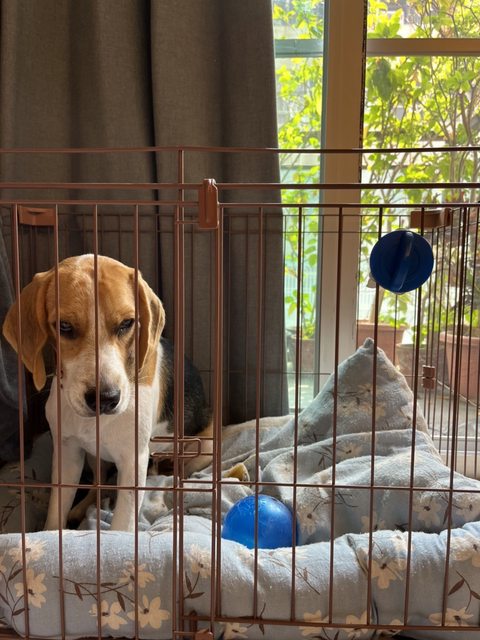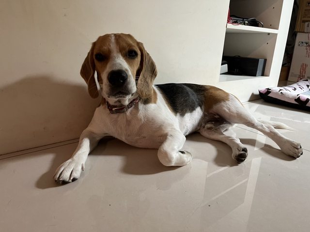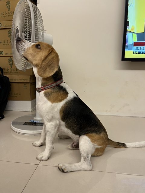 他的顏色比一般米格魯來的淺,很好辨認!