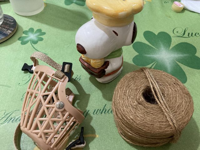 史努比存錢筒、麻繩、狗狗嘴套