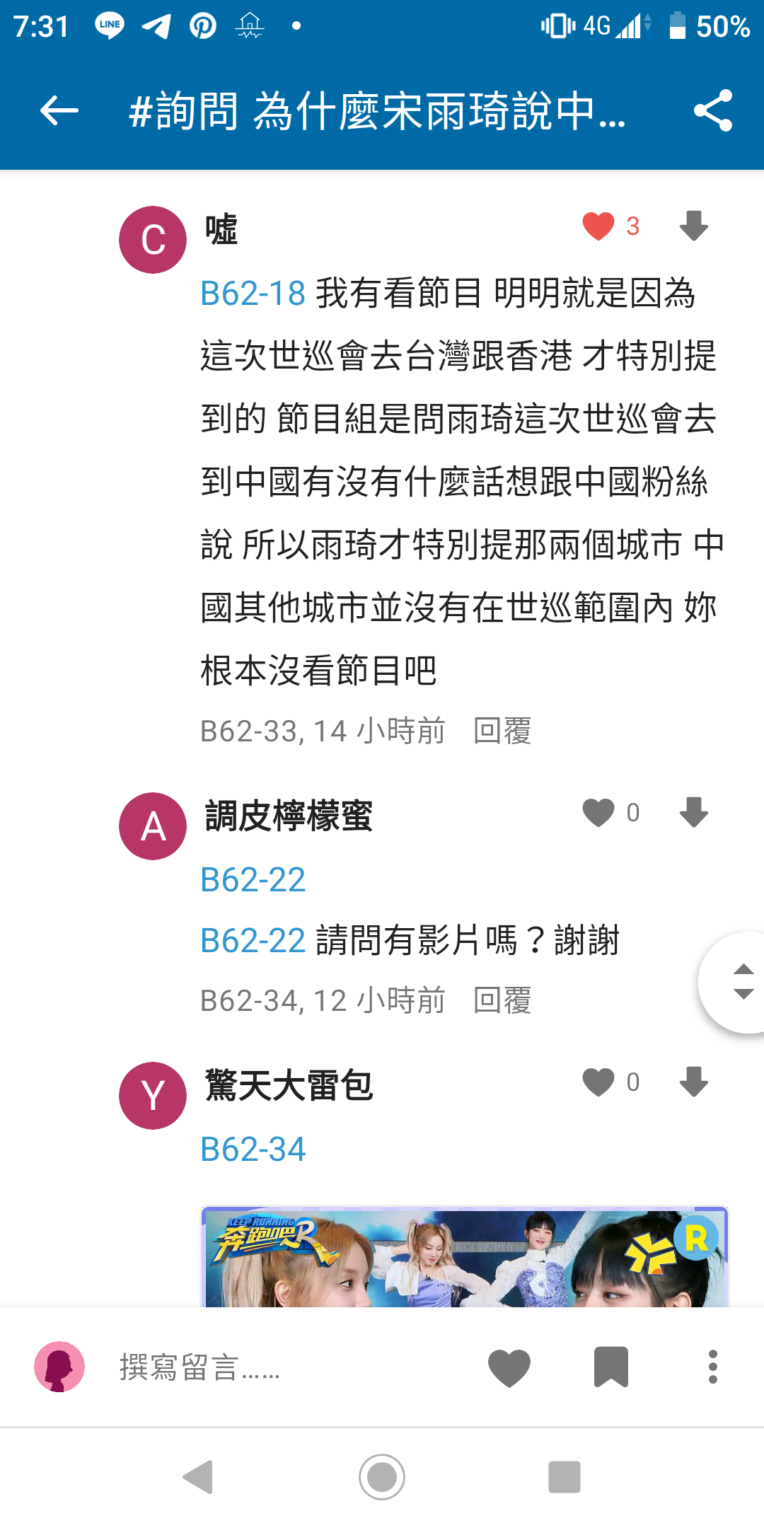 → linjolene: 雨琦這個發言真的非常沒有顧慮舒華 這 219.91.49.118 07/20 13:39