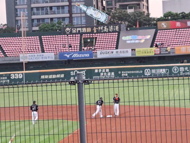 台南球場開始擺草地音樂會的關東旗,