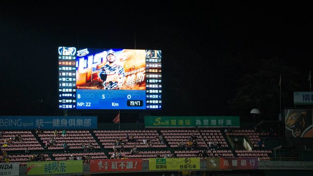 大家準備離開座位前往草皮時大螢幕播起了亞運轉播