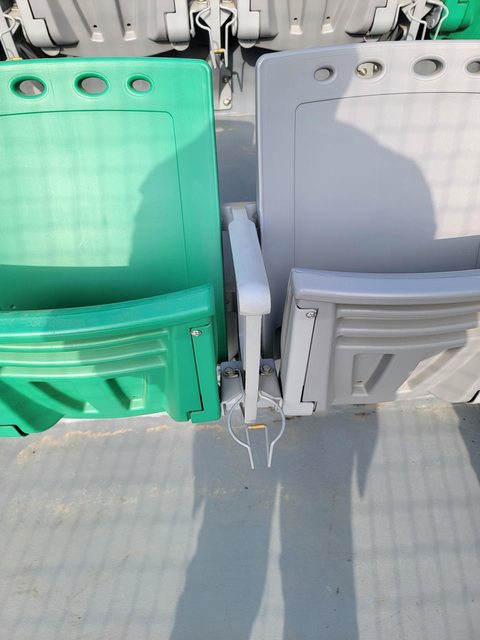 球場觀眾席的部分 成棒場的椅子杯架是在下面