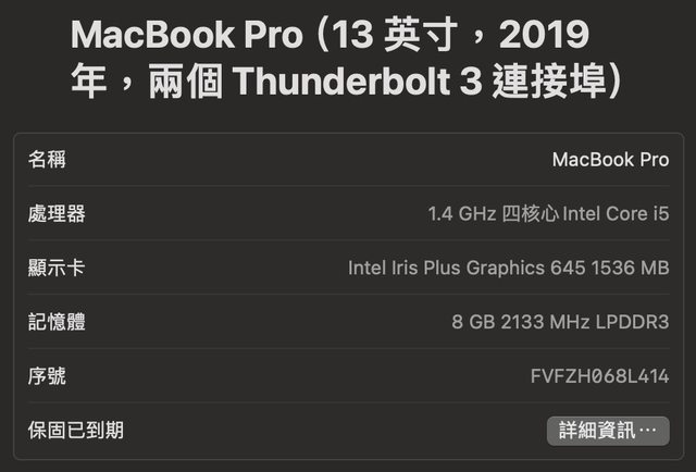 標題[販售] 台北 2019 MacBook Pro 13" 8G/256G 售出