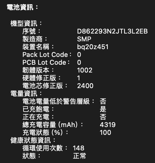 電池循環次數低的原因是之前有一次鍵盤召回,我在A13直營店換過鍵盤和電池(下半部