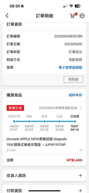 今年9/30從PChome下單,使用未滿一個月