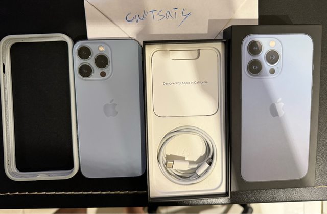 [型號] iPhone 13Pro 256G 天峰藍 暫時售出 [規格] 如上 [保固] 已過保 2021 年購入 [盒裝配件] 原廠盒裝 二手充電線有使用痕跡 附贈犀牛盾邊框 灰色 [售價] 18000 [交易方式/地點] 面交 / 新竹竹北 [連絡方式] 站內信留line [商品照/補充說明]